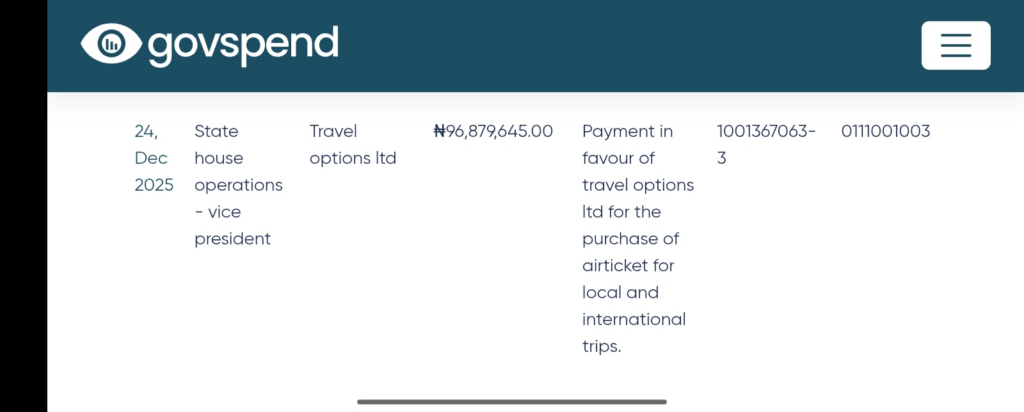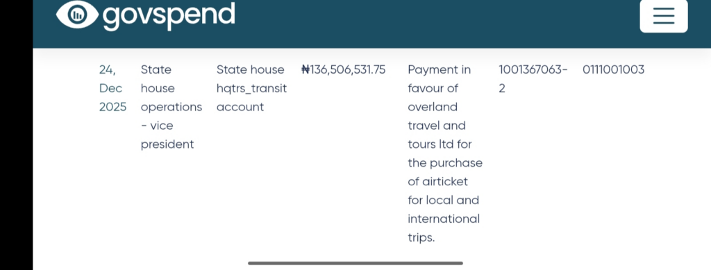 Despite budgeting a whopping sum of N6.1 billion for Bola Tinubu’s foreign trips in the 2026 budget, a review of Nigeria’s public payments portal, Govspend has revealed that the Presidency under Bola Tinubu spent approximately N1.5 billion on air tickets in a single day.